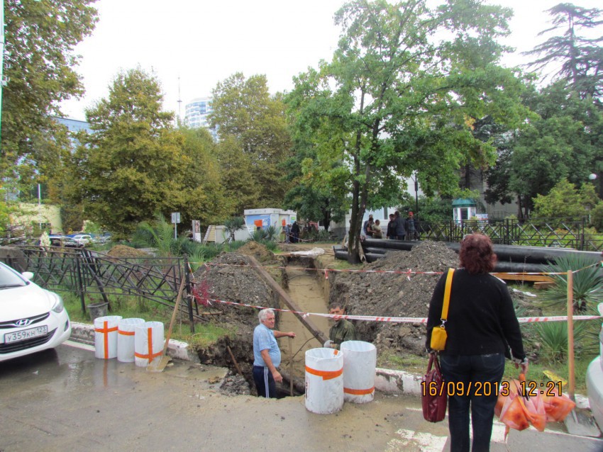 Строители нанесли очередной удар по Сочи. На этот раз с целью прокладки теплотрассы практически полностью перекопана территория пальмария возле Платановой аллеи. Сами строители говорят, что можно было провести работы и с гораздо меньшим ущербом для пальм, но им «так сказали», вот они так и делают. Вообще нужно очень ненавидеть этот город, чтобы делать подобные вещи.