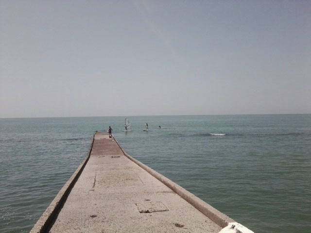 13. Ребята пытались на тихой воде и почти при полном безветрии заниматься виндсёрфингом.