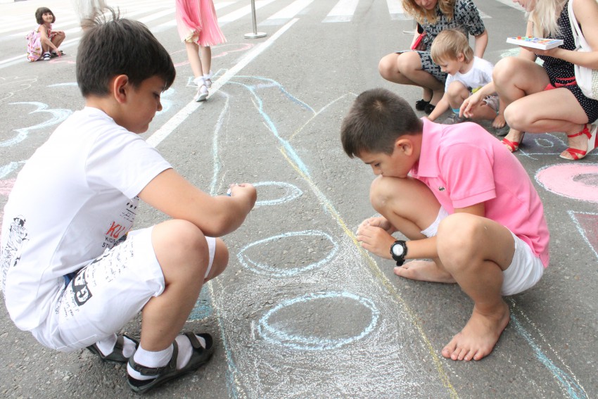 Сегодня, 1 июня, на привокзальной площади Международного аэропорта Сочи состоялась акция, приуроченная ко Дню защиты детей. Воспитанники творческой студии «Оле Лукойе» совместно с преподавателями создали настоящее художественное полотно на асфальте перед входом в аэровокзал. В процессе работы к ним присоединились и юные пассажиры. Все, что потребовалось им для творчества — наборы цветных мелков и отличное настроение.