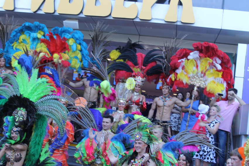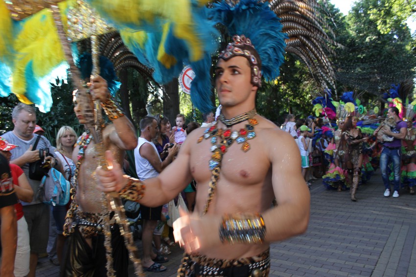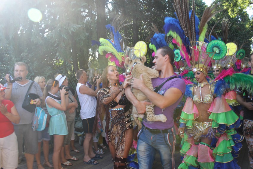 Российскому цирку в год Культуры РФ исполнилось 95 лет, вчера 8 августа.Сочинский цирк и Королевский цирк Гии Эрадзе *Пять континентов*, находящийся в Сочи на гастролях, отпраздновали это событие костюмированным шествием артистов в парке *Ривьера*. Для гостей и жителей города Сочи было представлено цирковое шоу.Очень хотелось увидеть обещанное мини--представление с участием моих знакомых, трех ли-лигрят(детенышей белого африканского льва Цимба и лигрицы Маши) и эстрадно--цирковой блок *Бразилия* с участием Мадагаскарских лемуров.Однако состоялся только первоклассный цирковой номер от Королевского цирка Гии Эрадзе *Пять континентов*--*Таинственный восток* с одним питоном и обезьяной.Почему мероприятия в городе Сочи выполняются не в полном обьёме?