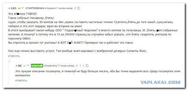 Суть госзакупок лишь написании ТЗ под своего поставщика (всех остальных нах.й, потому что видите ли у Вас эта хреновина на 1 грамм меньше/больше весит чем указано) — способов миллион и выдумываются все новые, далее (если позволяет подведомственность) размещение аукциона на подконтрольной площадке куда попросту фиг зарегистрируешься или условия дикие (всех остальных нах.й).