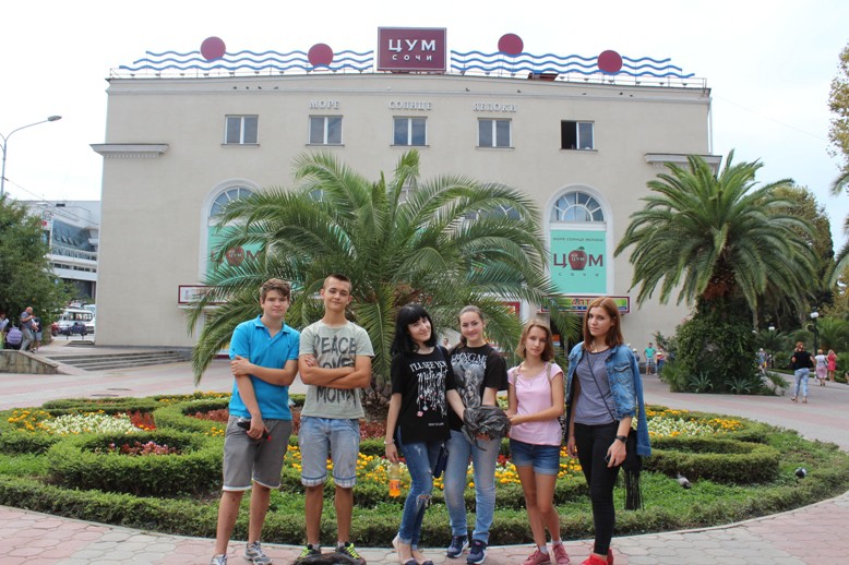В рамках акции ЦУМа, проведённой при поддержке администрации Центрального района в лице Андрея Викторовича Терещенко, управления молодёжной политики города Сочи и лично Владимира Ивановича Симонова, добровольцы-студенты колледжа поликультурного образования Денис Алёнкин, Анжелика Назаренко, Алина Асвалова, Снежана Ранзок, Полина Аветисян, Егор Будко и работники универмага вместе вышли на площадь, чтобы навести здесь максимальную чистоту и порядок.