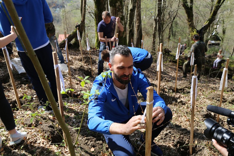 Первая акция по высадке 100 экз. пятилетних саженцев граната обыкновенного, доставленных из лесопитомника по выращиванию аборигенных, редких и исчезающих видов древесно-кустарниковых растений Западного Кавказа, прошла сегодня на территории Верхне-Сочинского участкового лесничества в окрестностях села Пластунка. В экологической акции по высадке саженцев помимо сотрудников Сочинского национального парка, приняли участие и спортсмены — игроки футбольного клуба «Сочи».