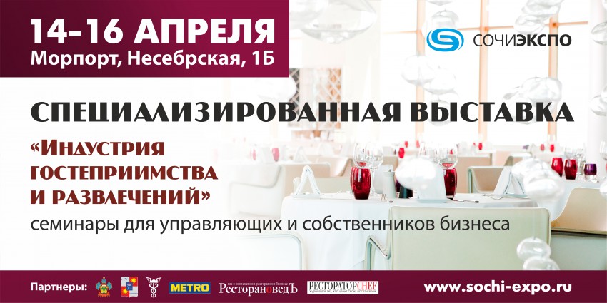 Приглашаем Вас принять участие в специализированной выставке «Индустрия гостеприимства и развлечений», которая пройдет в г. Сочи, с 14-16 апреля.