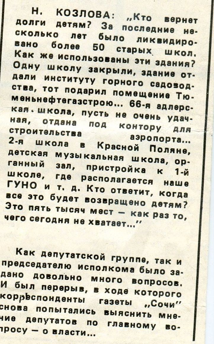 И это газета Сочи с отчетом о депутатской сессии в октябре 1990 года. Какие вопросы? По головам, с драками в очередях.
