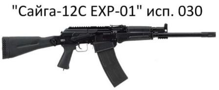 «Сайга-12С EXP-01» исп. 030 — многоцелевое самозарядное ружье (аналог ружья для России «Сайга-12К» исп. 030). Ружье предназначено для охоты, спортивных соревнований и самообороны.