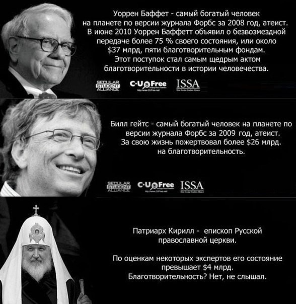 Человек сначала обдирает других, а потом «от щедрот своих» малую долю отдаёт вкакой-то фонд. В фонде тоже свои бюрократы кормятся. Какая доля и кому из нуждающихся попадает?