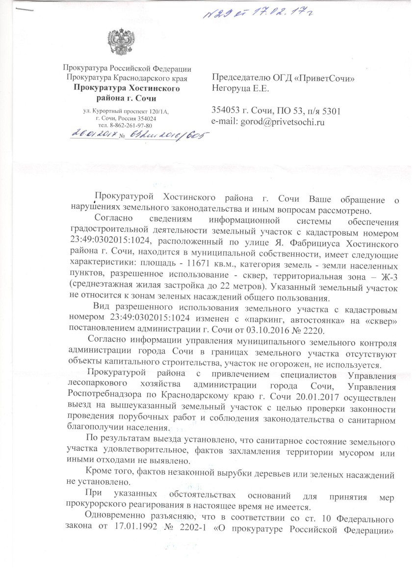 Конечно нужный, безусловно! Помню как жители в прошлом году за этот участок бились… А мы с Еленой Yabeda прямо под Новый год, числа 28 декабря, ходили на приём к тогдашнему прокурору Хостинского района — Воробьёву, с требованием не допустить бетонирования…