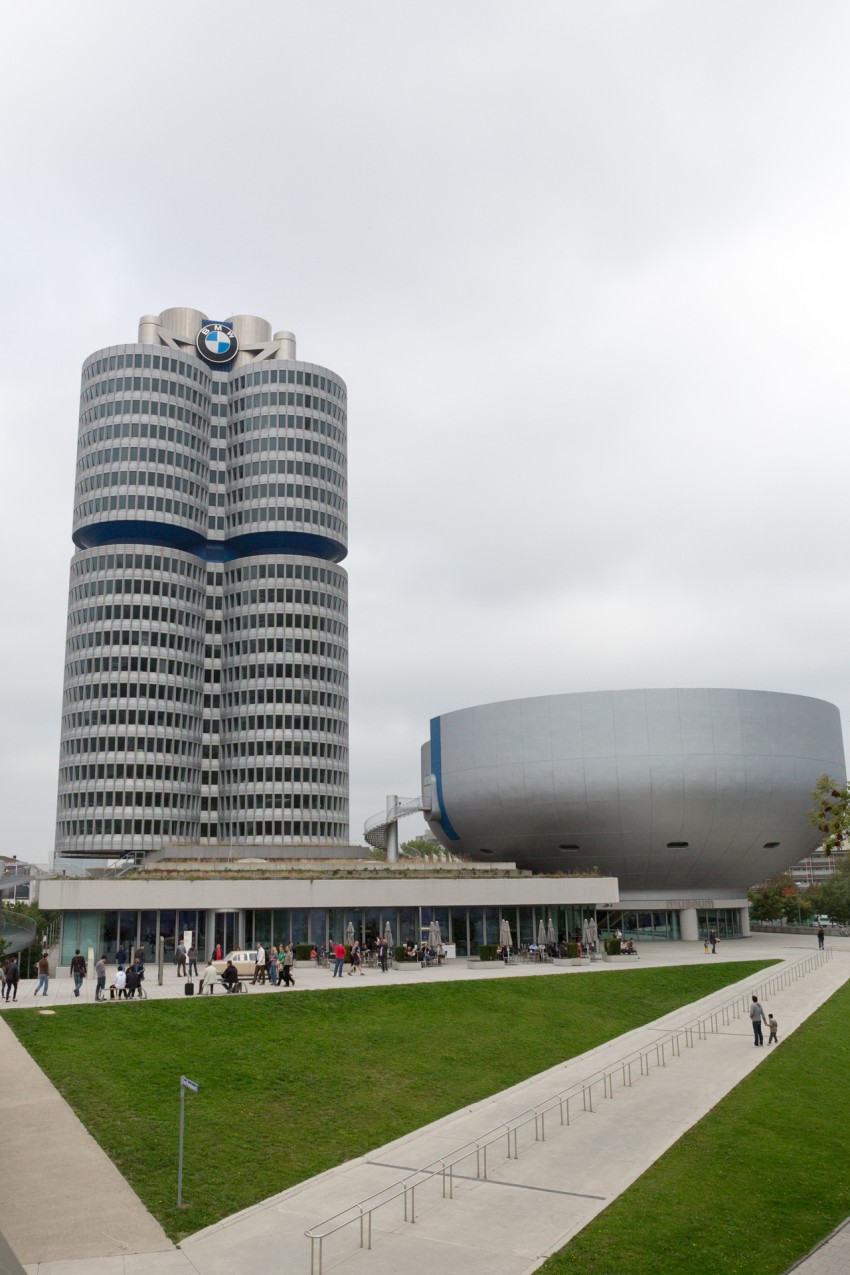 Штаб-квартира BMW в Мюнхене — четырёхцилиндровая. Рядом, в виде корытца, расположился музей БМВ, куда я вас и приглашаю.