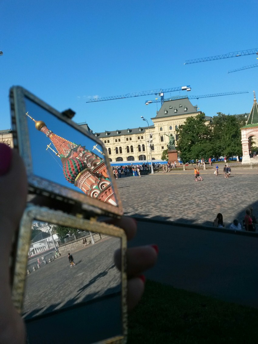 Впервые мне удалось побывать на Красной площади. Красиво! Монументально! Собор Василия Блаженного, как печенюшный, а купола, будто из марципана! Кремль такой величественный, часы на Спасской башни звучные — звонят, прям дух захватывает!