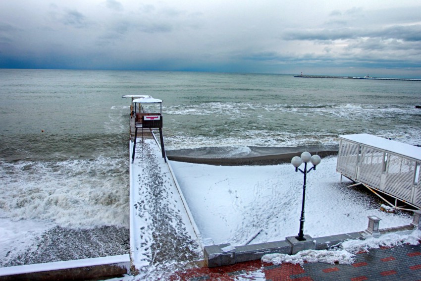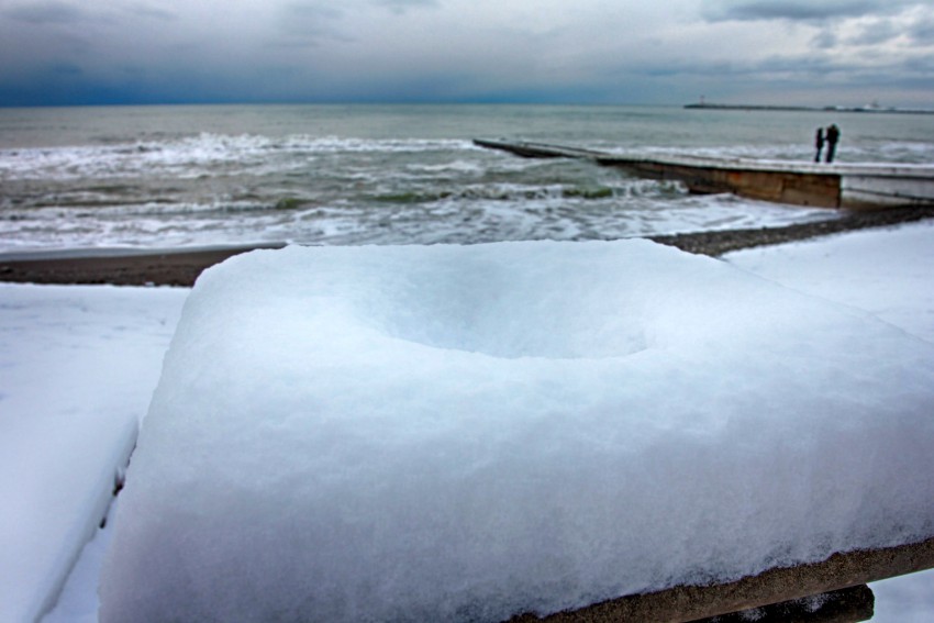 Пару кадров зимнего моря, оно было как никогда «атмосферно», наверное из-за снежных туч и яркого цвета воды: