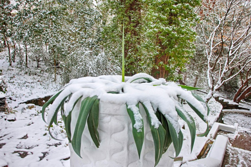 А некоторые южные растения выглядывали из-под снега и дразнили яркими красками: