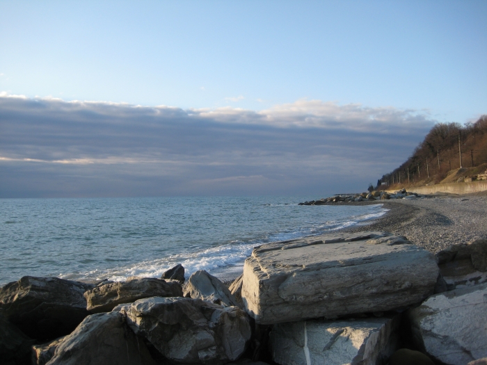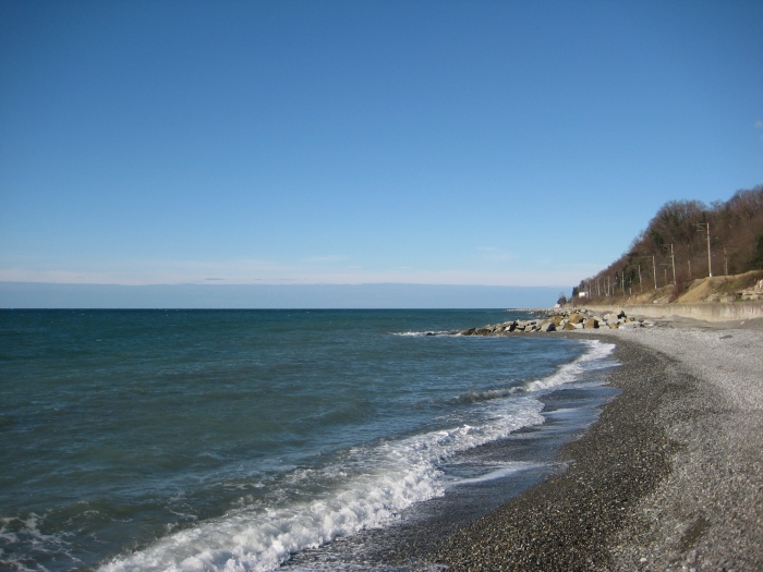 Берег был хороший, галечник. В море дно песчаное, небольшими скальными выходами. Для ныряния и подводной охоты — самое то!