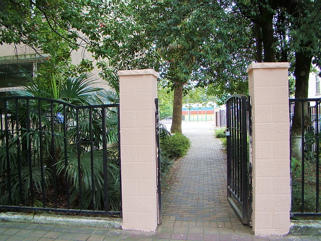 Пришлось поплутать вдоль забора, пока я нашел вход ведущий в спортивную школу. Калитка притаилась между Пенсионным фондом и 8 школой. Очень хотелось узнать, какими видами спорта радуют детей и подростков на летние каникулы, а так же посмотреть спортивный инвентарь нового учебного заведения. Мне повезло, работу спортивной школы №1 я застал в самом разгаре!