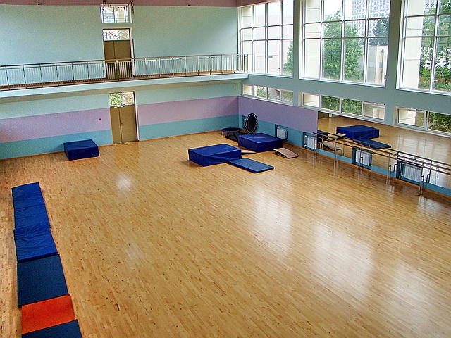 Гимнастов я, к сожалению не застал, они ушли пока я снимал велоспорт. Но зал для занятий спортивной гимнастикой великолепен!