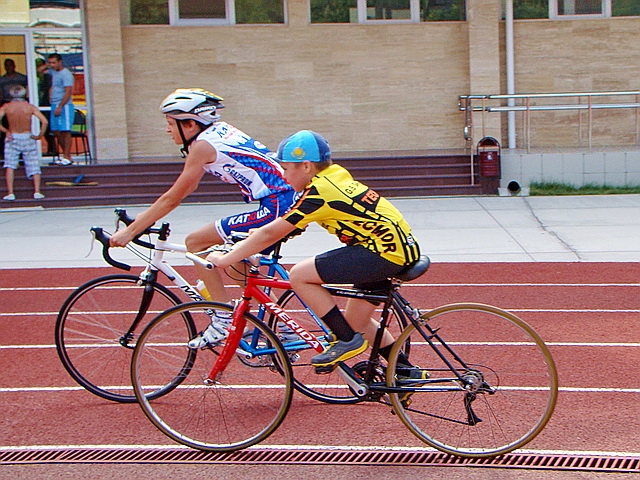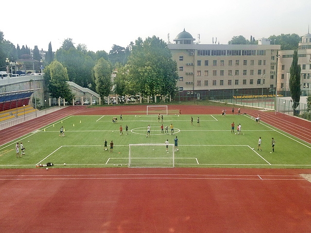 На стадионе занималась секция велоспорта. Ребята гоняли на велосипедах, наматывая круги, тренер засекал время. Когда-то в Сочи шло повальное увлечение этим видом спорта, в городе проводились международные соревнования, приезжали иностранные спортсмены, спорт считался элитным. Часто по улицам города ездили тренироваться велоспортсмены сопровождаемые мотоциклом. Возрождение секции велоспорта в Сочи откровенно порадовало. Браво!