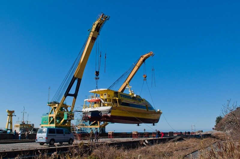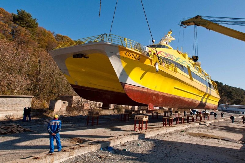 15 ноября на пляже «Белые ночи» с 7:00 до 15:00 проходила интересная и масштабная операция, по извлечению катамаранов Сочи-1 и Сочи-2, для прохождения ими профилактических работ.