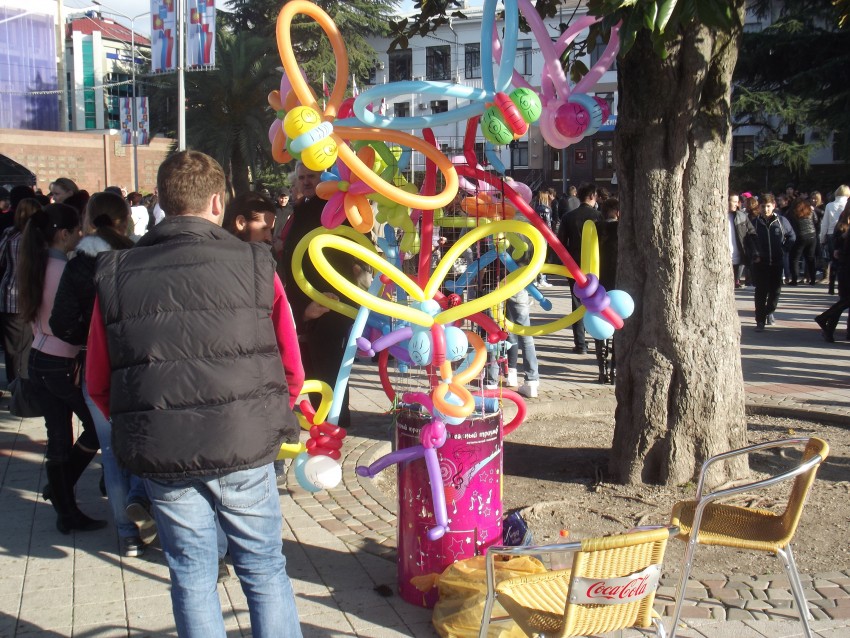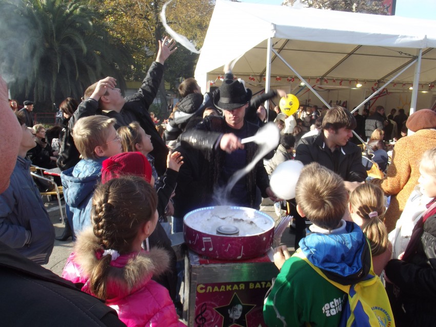 Удалось выбраться только к вечеру(в 16.30)Настроившись только на самое лучшее мы с друзьями устремились на Площадь искусств.Еще теплилась надежда на то, что к завяленным арт-объектам прибавиться Город Мастеров(ведь талантливых людей в Сочи очень и очень много), но увы, меня ждало разочарование.Опять пресловутые кибитки со жратвой слегка подпортили настроение.На сцене пели молодые рок группы, звук был отлажен, песни были в духе времени и новых молодежных течений.Оставалось только порадоваться.Жаль, что не было напечатанной программы, так как я так и не поняла, кто выступал на сцене.Местные группы или заезжие:)Смешным показался слоган и коментарий ведущих«Наша машина везет интернет и теперь и в Сочи есть wi-fi». Ну спасибо, за лампочку Ильича:)