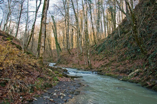 Листья уже опали и красоты особой нет в лесу, но после дождя вода в водопадах очень красивая.