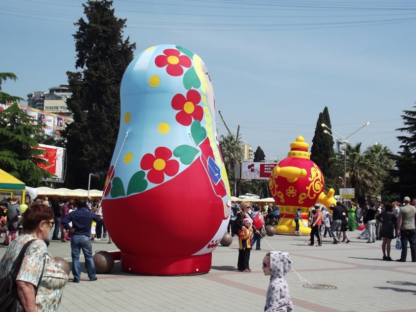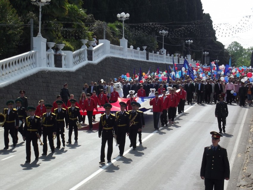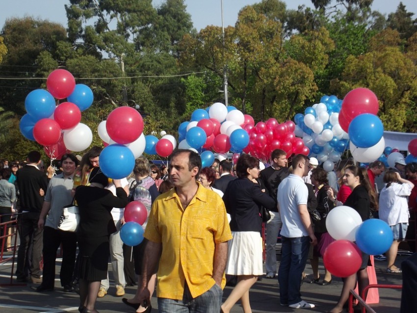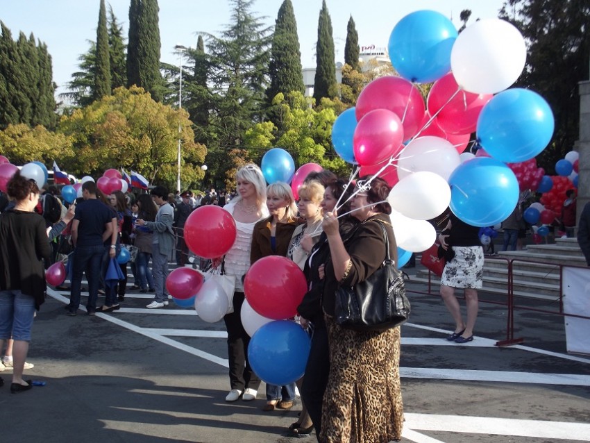 Утро. 1 Мая. Сочи готовится к празднику, горожане постепенно собираются на площади возле Зимнего театра.