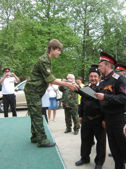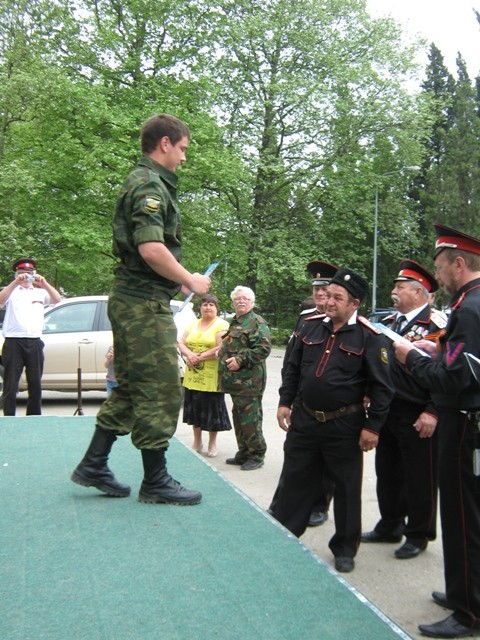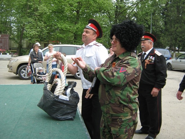 С намёком о необходимости потренироваться атаманом Дагомысского хуторского общества сотником Кириченко ребятам был вручен такой вот подарок