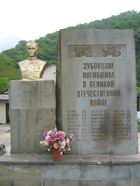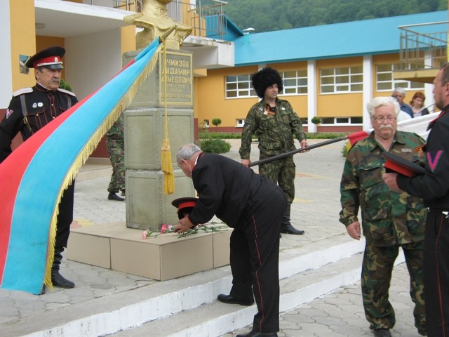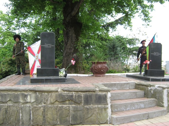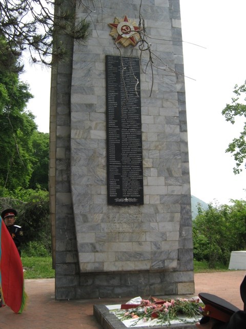 Конечной точкой маршрута был Дагомыс, где нас ждали ребята из военно-патриотического клуба «Пласт», которые также возложили цветы к памятнику погибших земляков — Дагомысцев.