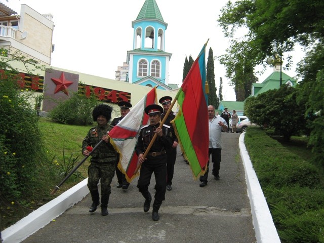 8 мая часть казаков Лазаревского района на четырёх автомобилях совершили автопробег по посёлкам своего района с посещением памятникам сочинцам, погибшим во время Великой Отечественной войны.