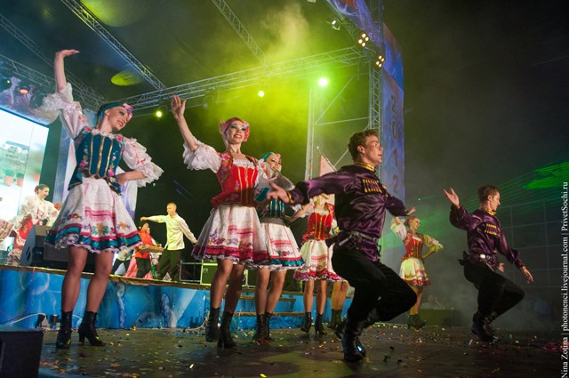 На сцене выступило более 50 сочинских коллективов и солистов, вручили подарки особо отличившимся жителям города.
