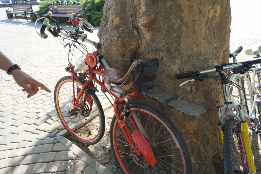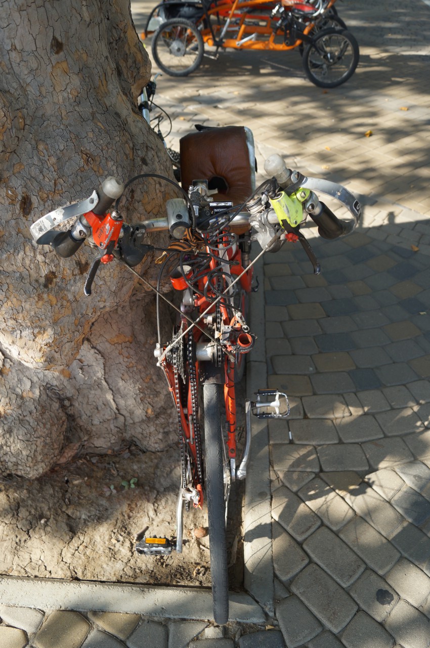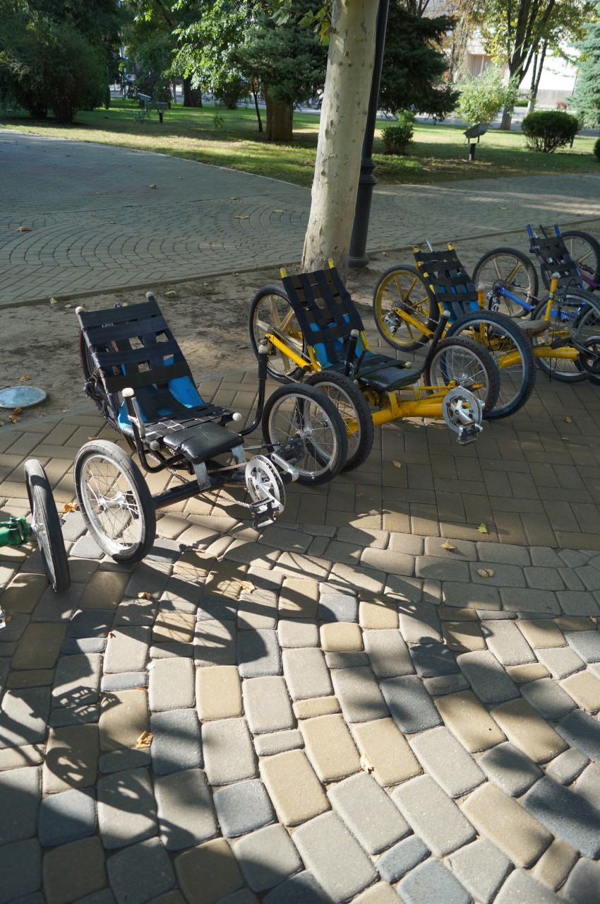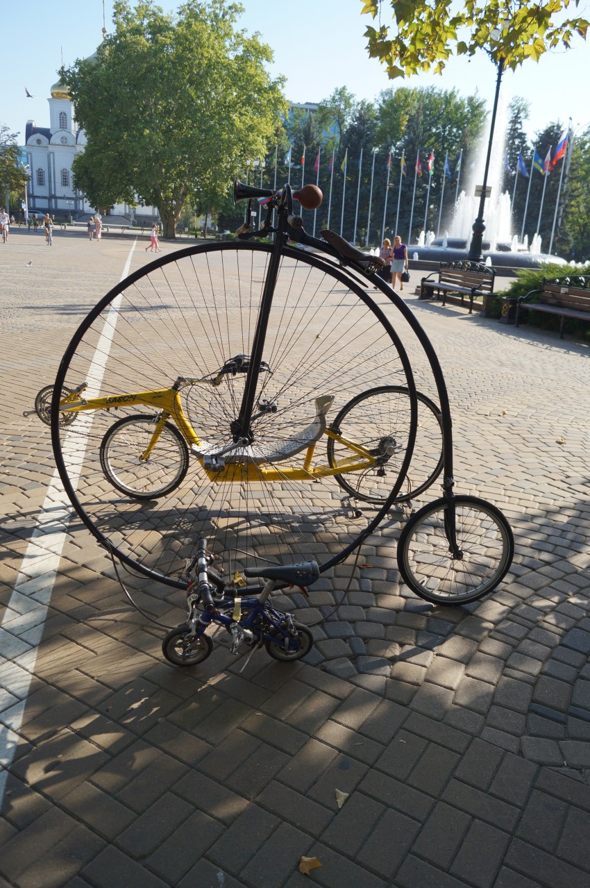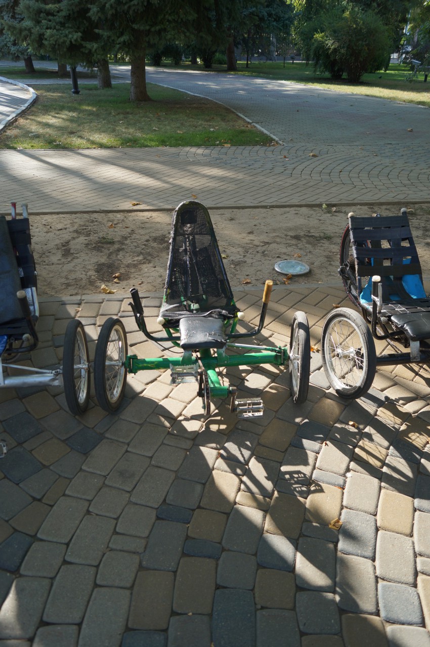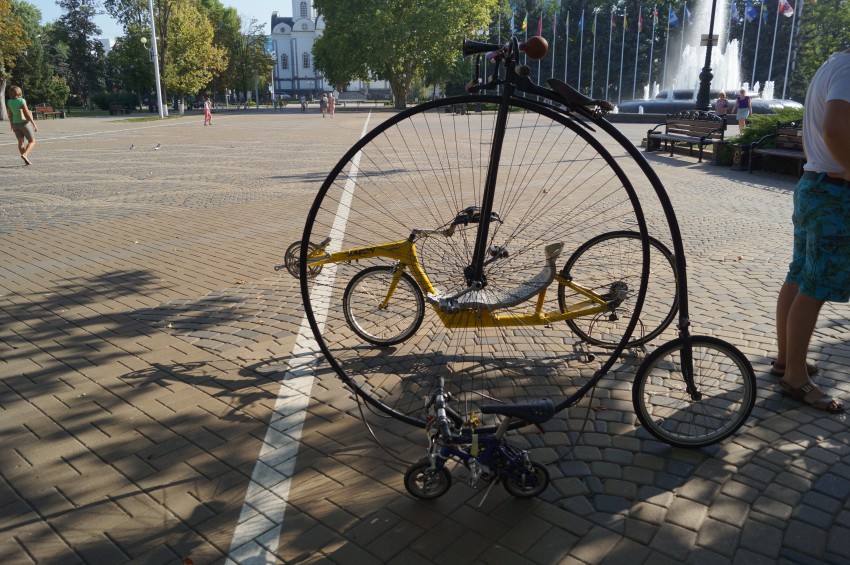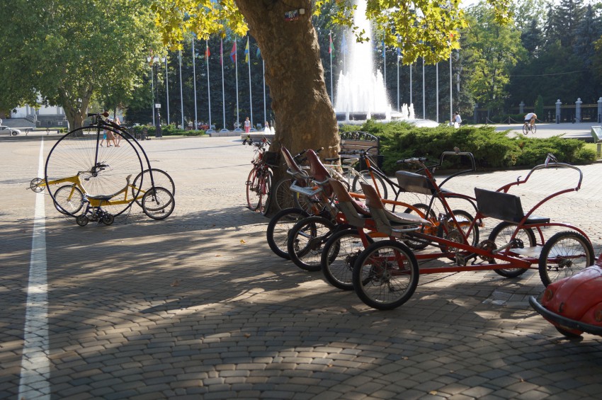 Недалеко от памятника императрице Екатерине II в Краснодаре, мной был замечен прокат необычных велосипедов самодельных, на которых можно покататься по площади и парку. И спешу поделиться с вами фотографиями этих самоделок: