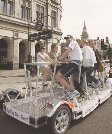10 местный с барной стойкой, танцполом, диджеем — рулящим, поворотниками и стопами, работающими от солнечных батарей…