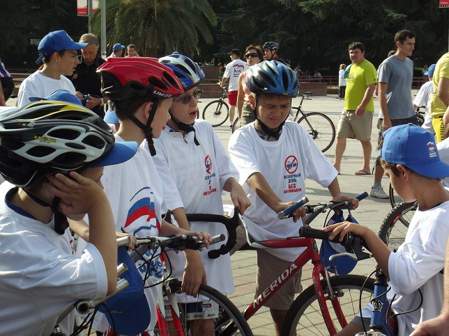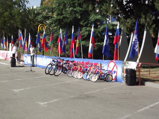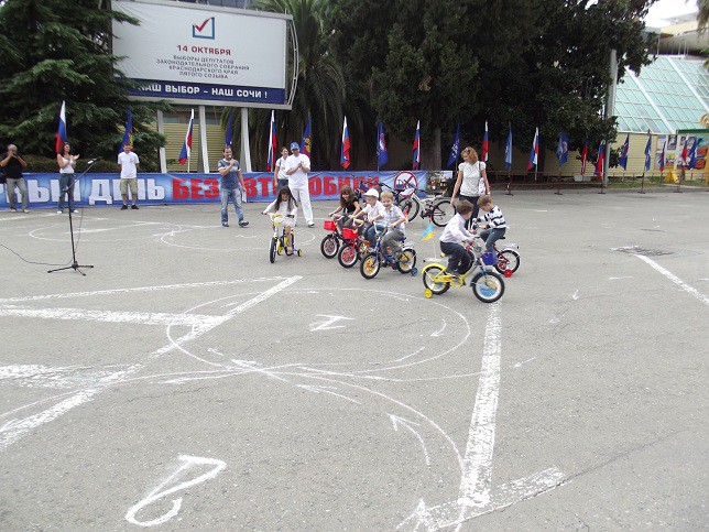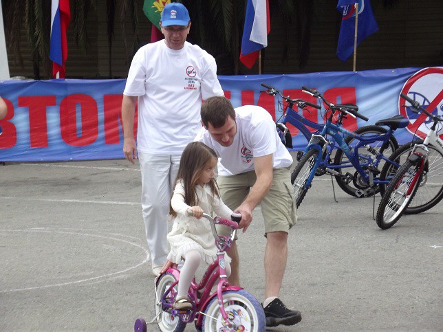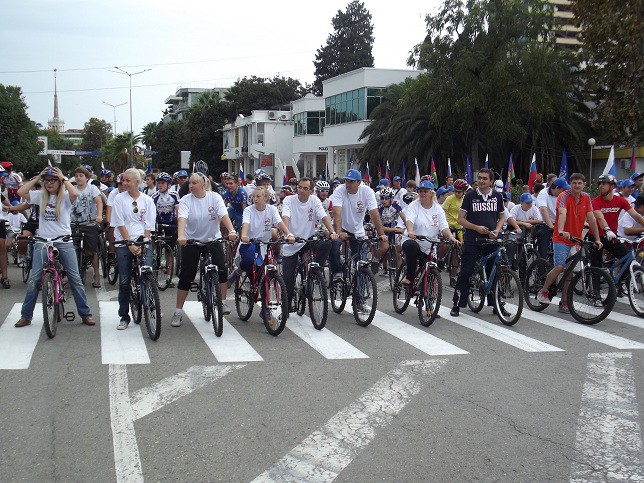 Второй год в нем принимает участие и Сочи. На площади перед администрацией собрались любители велосипедов, скейтов и роликов. Посоревновались в фигурном вождении, сюрпляссе, а затем общим пелотоном проехали несколько кварталов по центру города. Перед этим еще были вручены восемь детских велосипедов воспитанникам детского сада номер 5 и три лучшим волонтерам.