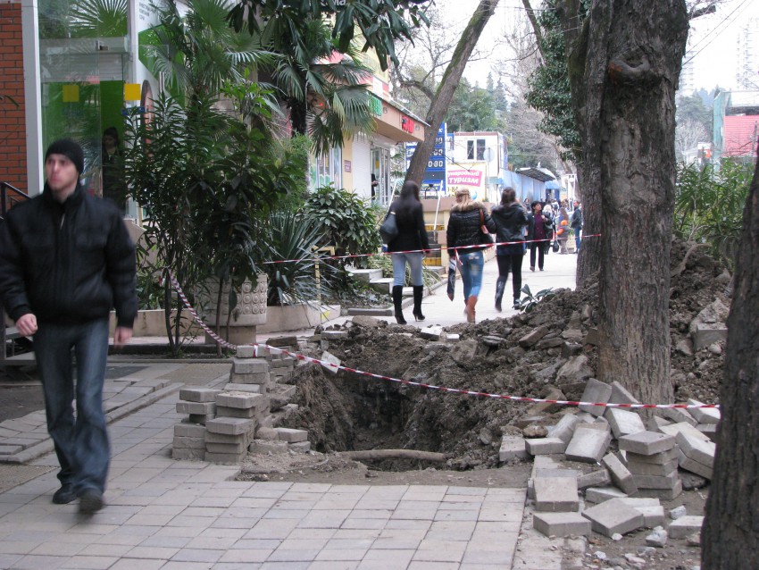 Как это по оллимпиански, сначала облагородили набережную, потратили кучу бюджетных денег, не прошло и пару лет опять все перекопали, чтобы исправить последствия чьего-то склероза, а потом опять кучу денег вбухают, чтобы прежний вид воссоздать. А на обычный ремонт социально значимых мест города денег как всегда нет.