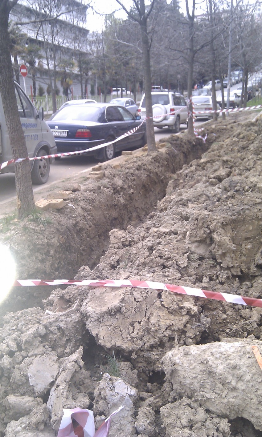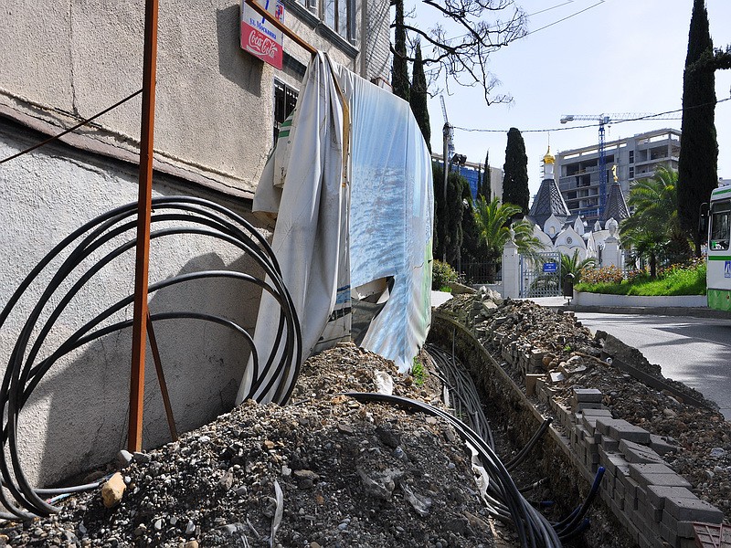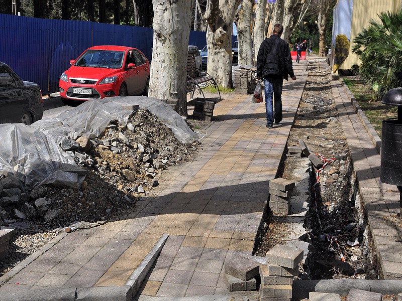 Последнее время создается впечатление, что город перерыли огромные питающиеся асфальтом кроты. Куда ни кинешь взгляд все раскурочено, кругом кучи песка, глины, тротуарной плитки. Нас все просят подождать, немного помучится, до наступления олимпийского счастья, а сил терпеть, больше нет. Начинаешь отчетливо понимать, что семь лет отпущенных чиновникам на строительство олимпиады, ушли на брифинги, банкеты и презентации. Это как сказка о стрекозе, которая лето красное пропела, оглянуться не успела, а спортивный праздник уже наступает на пятки. И вот в последний момент вся энергия брошена на прокладку электрокабелей, труб, канализационных коллекторов. Строители роют дороги, парки, тротуары, нас в упор не замечают, как и наступающий летний сезон отпусков. Решили с друзьями из Ростова прогуляться по центру города, а здесь одни сплошные разрытия. За синими заборами, перекрывшими улицу, работает один, два человека, паспорта объекта не наблюдается. Кто роет, зачем роет, когда сделают, не понятно. Друзья сказали, что у нас не город, а траншея. Я почему-то с ними согласен.