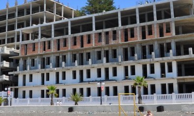 Помпезное строительство, гигантский котлован, все превратилось в озеро грязи и ржавой арматуры. Сие великолепие находится в самом сердце зоны олимпийского гостеприимства. Даже дураку понятно, что до великого спортивного праздника построить и привести в порядок здесь ничего не успеют. А по сему придётся объяснять иностранцам – Ху из мистер Брынцалов.
