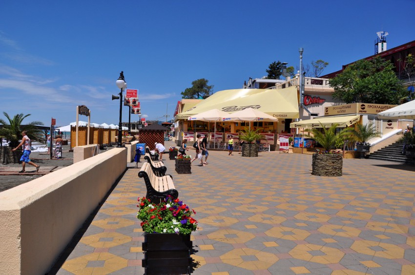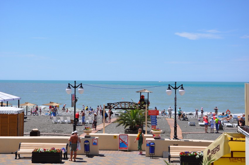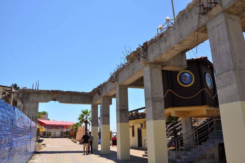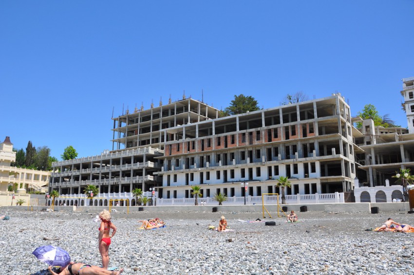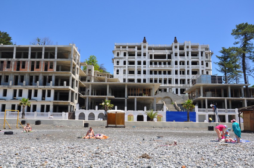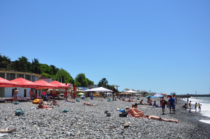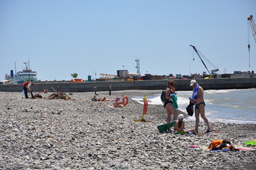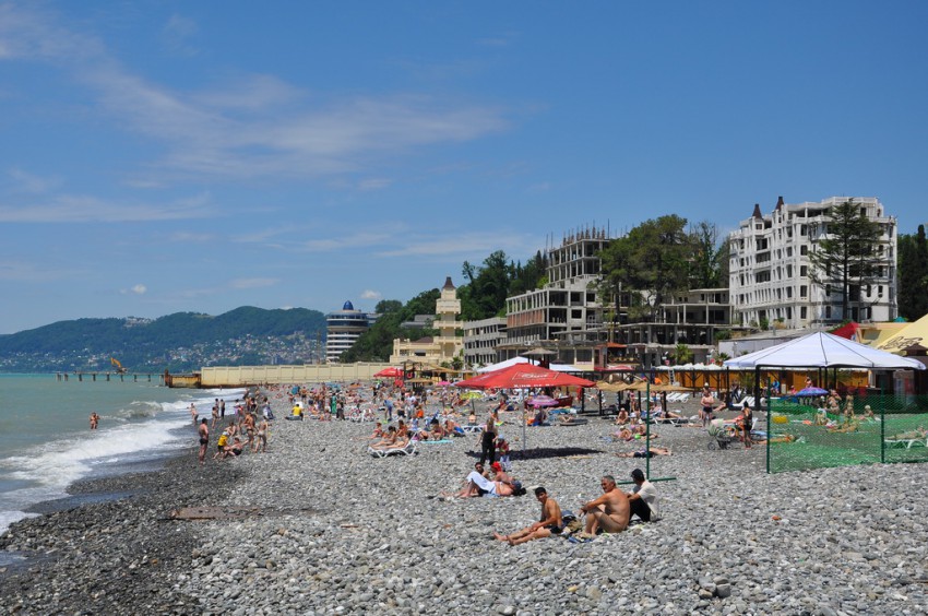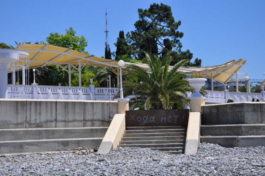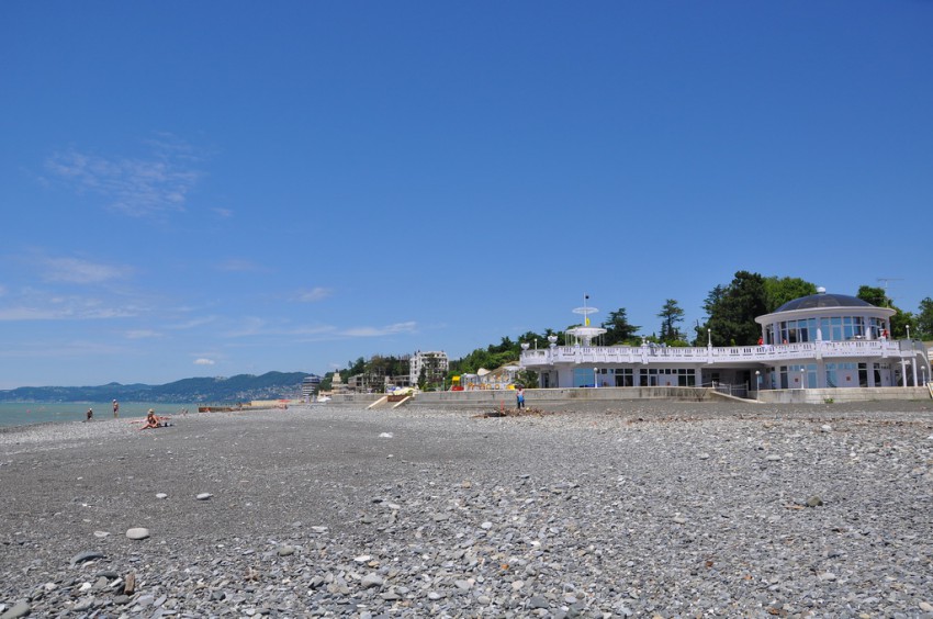Направо пляж муниципальный, но набережная и все, что с ней исторически связано, заставляет терять голову. Санаторий «Кавказская Ривьера», доставшийся миллиардеру Брынцалову, лежит в руинах. Набережная застроена жуткими строениями и их остовами. При всем желании здесь невозможно расслабиться и отдыхать.