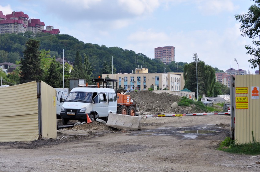 С подпорными стенами вроде разобрались, а вот коммуникации никак не хотят строиться. То канализацию прорвет под ковшом экскаватора, то старая ржавая труба вдруг обнаружится в совершенно неожиданном месте и ударит в небо зловонной струей макаренковской канализации. Надо бы навалиться и сделать все быстро — да видно, работать некому. Говорят, что как-то неожиданно куда-то растворилось гигантское олимпийское финансирование. А в результате тем, кто решится посетить рынок «Вертодром», либо едущим из центра, скажем к поликлинике на Абрикосовой, либо детишкам из 15-й школы, как и тысячам жителей вышерасположенных улиц, необходимо быть предельно осторожными. Выходя из маршрутки, они могут легко оказаться на дне зловонной канавы со сломанными конечностями или позвоночником.