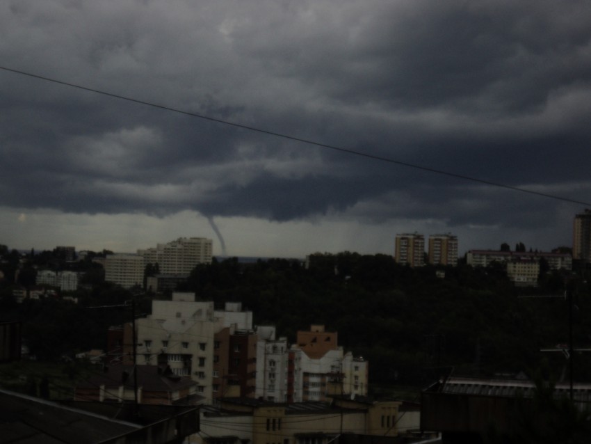 Смерч прошел над нами, сначала потемнело, ипотом ливень боковой с сильным ветром, потом затишье и свет на 30-40сек(так понимаю внутри воронки) отом повторно темень и сильный ветер с дождем бил в одну сторону машины, вторая даже не намокла через 3-4 минуты все стихло, еще минут через 10 появилось солнышко!