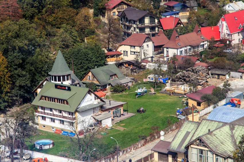 Дома по 5-9 этажей высоко в горах — это и вовсе дикость. Особенно, если учитывать, что это национальный парк. Ни в одной стране мира такого нет. А в России есть. Гордись, Россия!