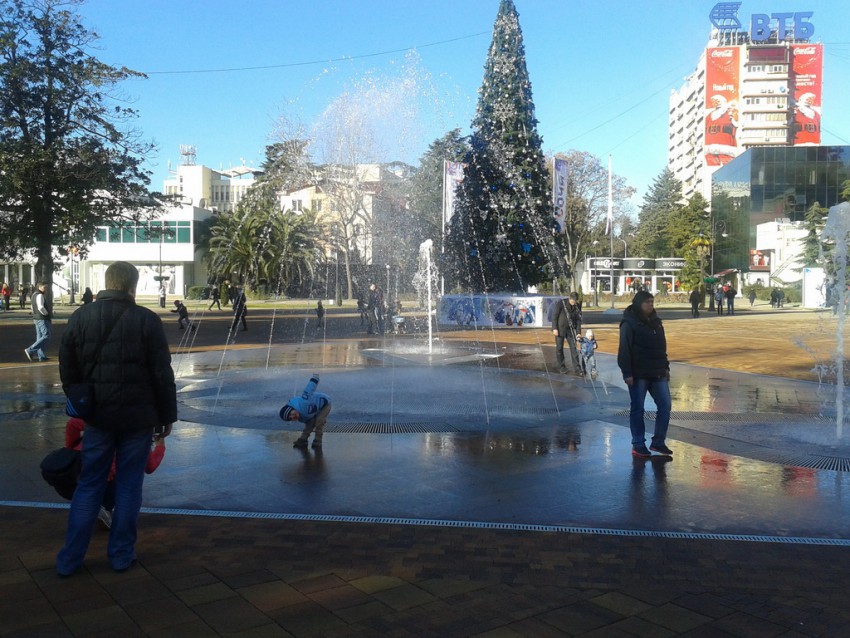 Дошел до фонтана перед мэрией. На мой взгляд неплохо и практично для южного города. Так и представил детишек брызгающихся здесь в жару. Да и самому приятно будет освежиться.