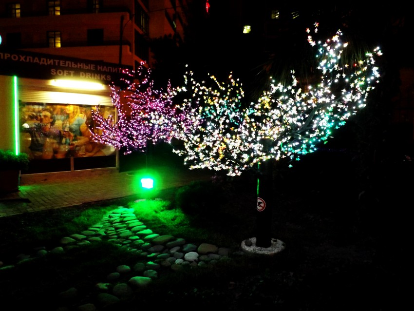 В Москве такие деревья уже давно стоят в центре. Там ещё есть специальные деревья для новобрачных, на мостах, чтобы замочки вешать. Как дерево заполняется замочками, его меняют на новое) Восхищения никакого нет, уже видели такое чудо, нас не удивишь)
