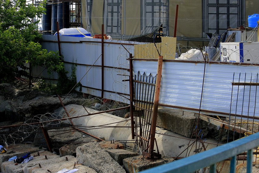 Железная дорога, защитившаяся от пассажиров высоченными заборами, и почему-то перекрывшая ими напрочь единственный цивилизованный выход от терренкура к морю, масса заброшенных зданий курортной принадлежности, состояние которых дает четкое понимание того, насколько наш сити-менеджер заботиться о процветании курорта во всех смыслах.