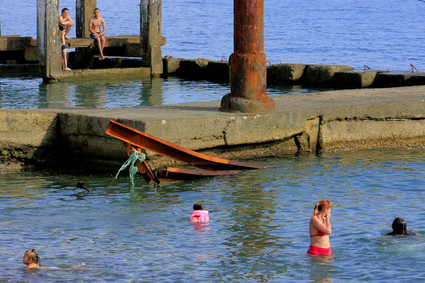 Тем временем бетонно-железное наследие СССР рушится, подвергая опасности купающихся.Но мы без претензий, ведь выше ясно сказано:Тоните на здоровье!