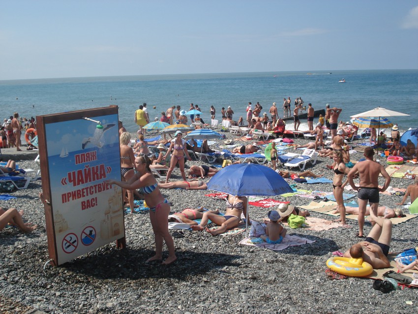 А это еще один хостинский муниципальный пляж с революционным названием «Овод». Здесь дела с отдыхающими обстоят получше?