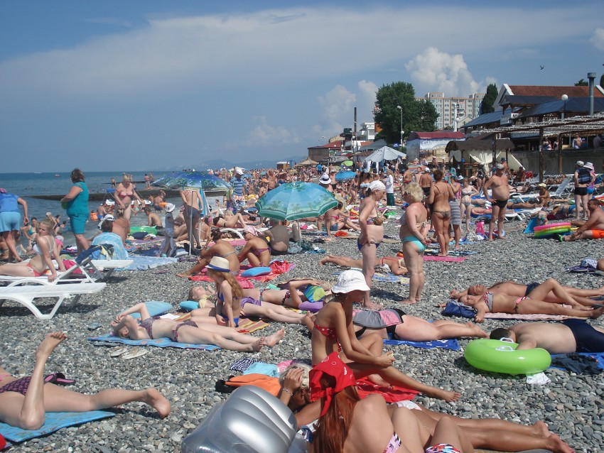 Вот такая пляжная картинка от Адлера до Мацесты, надеюсь вы не устали. Возможно мне показалось, что в Лазаревском, Лоо и Дагомысе народа больше? Ну да ладно, нас ждут городские пляжи, окончание прогулки еще впереди.