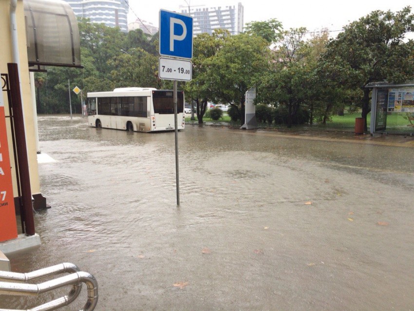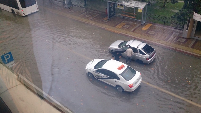 Не дождь, а отсутствие ливнёвок, либо же они забиты. Сегодня с 14.00 до 16.00 проехал по Советской, Горького, Егорова, Красноармейской, Гагарина, Донской (в обе стороны), Конституции, Пластунской и Тоннельной, и везде проблема с ливнёвками по правой стороне проезжей части дороги.
