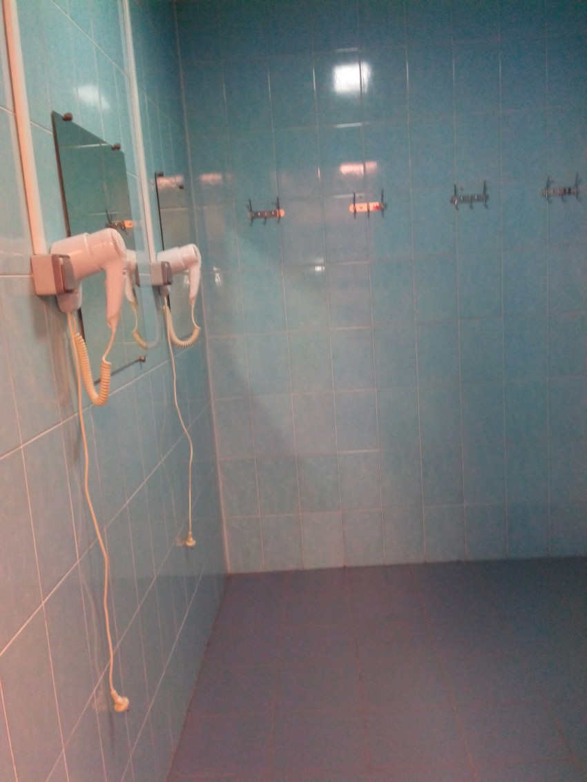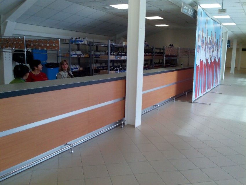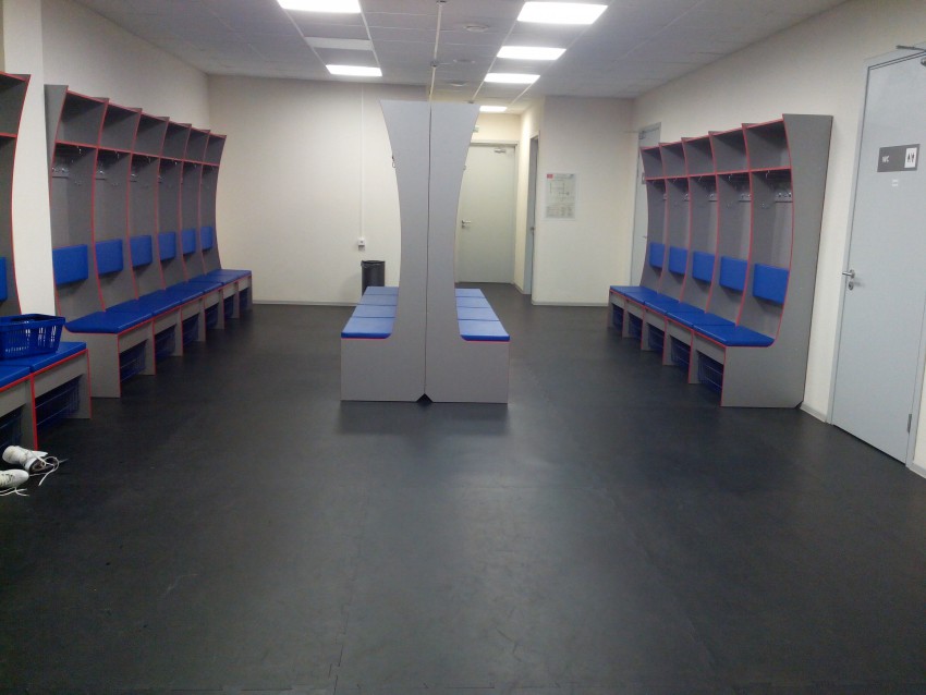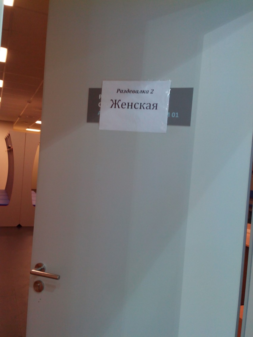 После получения каньков отправляют в раздевалку, есть мужская и женская. В каждой раздевалке есть душ и туалет (в мужской раздевалке помогала младшему брату обуть коньки)