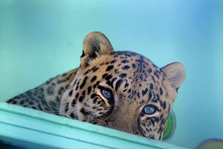 А между тем леопард мирно дремлет в своей зеленой квартире совсем как домашняя кошка.