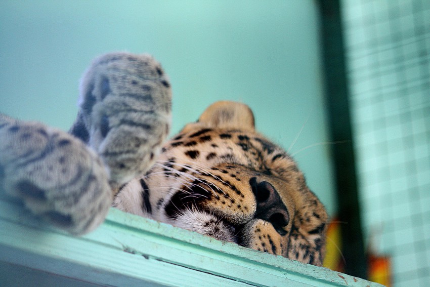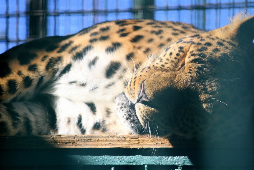 Сразу поясню, почему все звери спящие: на дворе ясный и очень теплый полдень, для хищников самый глубокий сон. Если хотите увидеть всех их в движении, классически нервно бродящих по клеткам, то приезжайте ближе к вечеру.