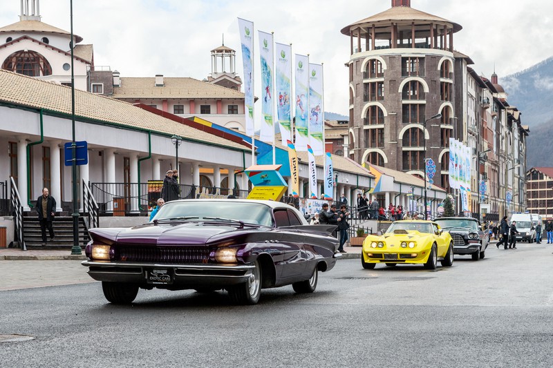 Затем гости переместились на высоту 540м, где их ждал кортеж ретро-автомобилей: