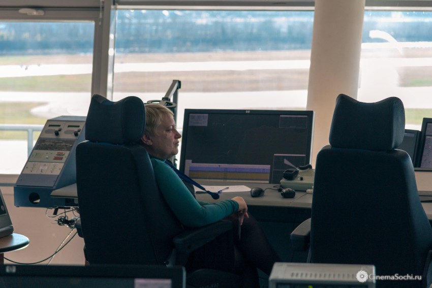 Мы поднимаемся на самый верх вышки, где встречаем диспетчеров руления (ДПР) и старта и посадки (СДП, ПДП):